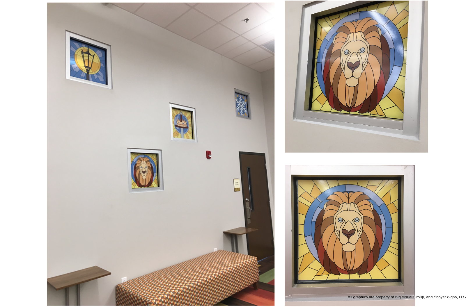 They wanted 2 themes: A “lion, witch and the wardrobe” theme for the children’s section and a Frank Lloyd Wright theme to cover the drink machine’s windows.