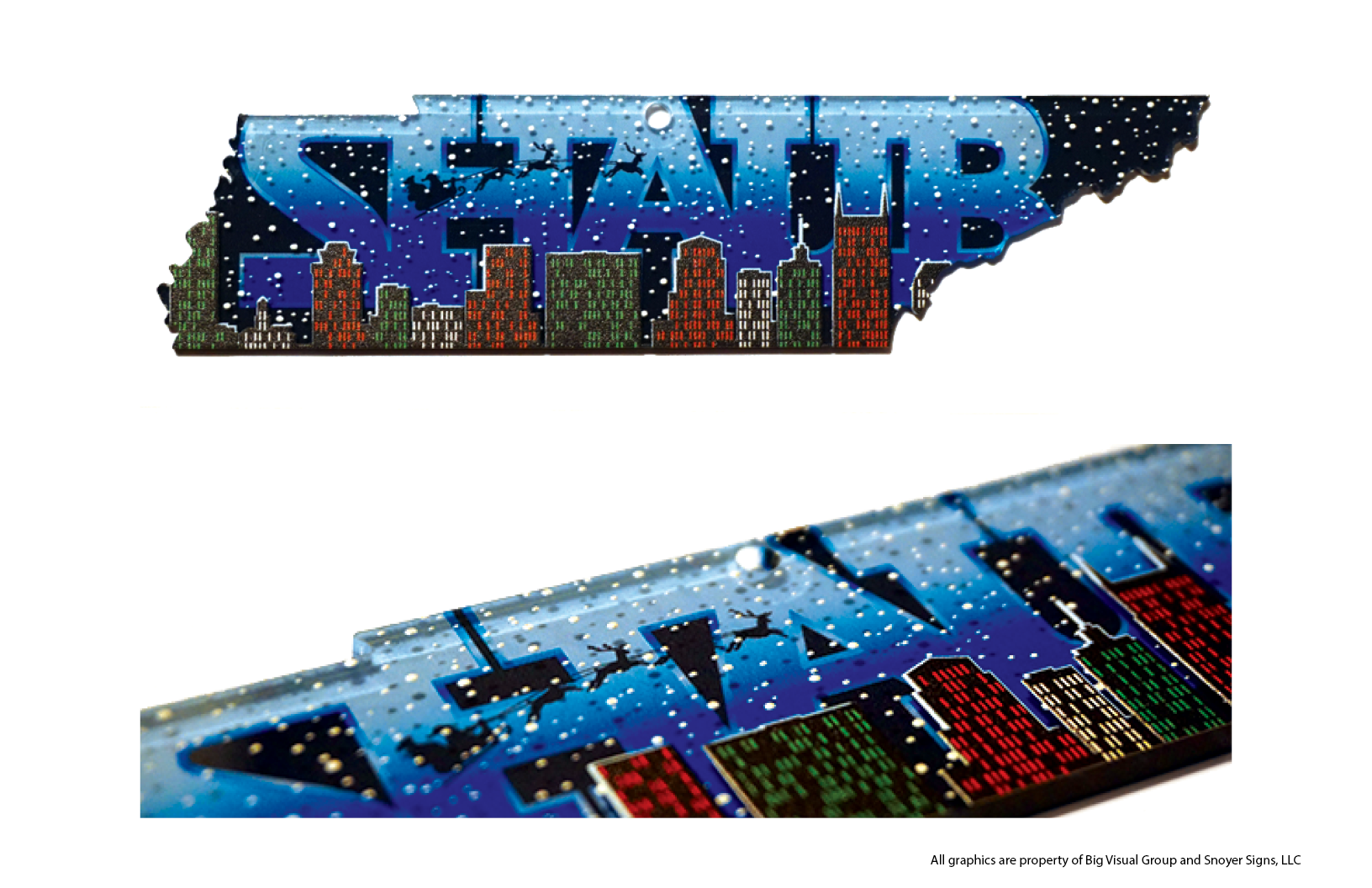 In 2019, I was tasked to create an ornament based on a design with the Tennessee state silhouette. Shaub Construction wanted to make sure it included their logo.